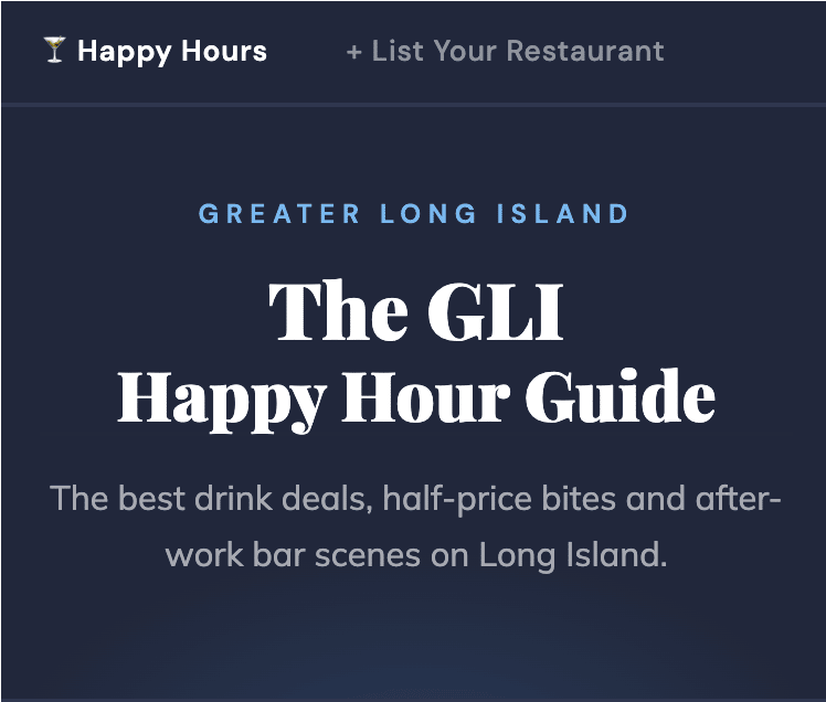 Your weekly roundups of Long Island's biggest stories By Mike White 🇺🇸 April 2, 2026 If you like our content, please forward this email to friends. SIGN UP ☕ Good morning, Long Island. 🥂 We've now got 54 deals featured on The GLI Happy Hour Guide! ✍🏼 Feel free to respond to this email with feedback. Weather: There's a 40 percent chance of showers today, mainly before 11 a.m. From there it will be cloudy with a high near 47. Source: NWS MEET OUR SPONSORS Based in Massapequa, Greater Long...